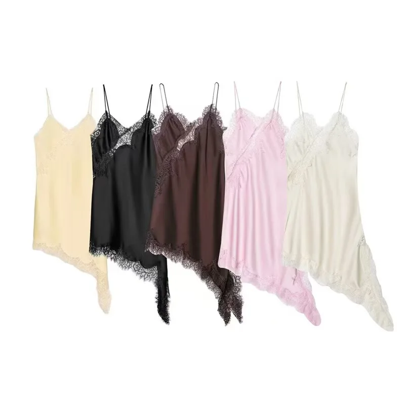 LYG Summer Women's Dress 2026 New Fashion Lace Asymmetric Dress Retro Sexy Suspenders Elegant Female Dress